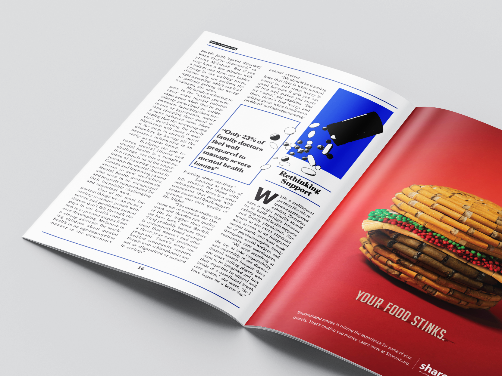 Conceptual redesign for The Walrus magazine. Masthead, editorial layout, and illustrations.